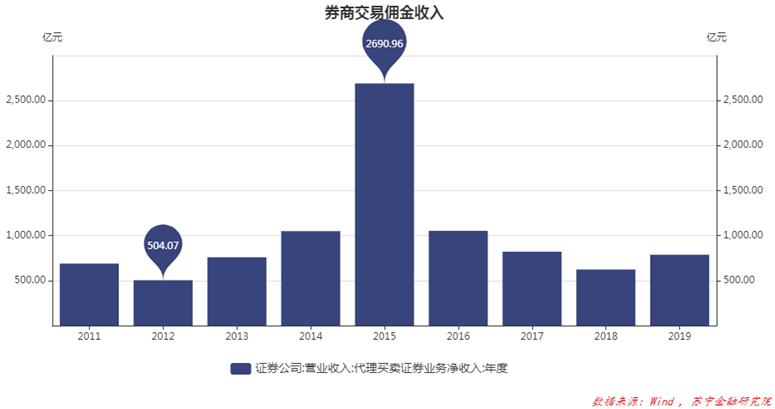 2015年埋藏了很多散户的痛苦回忆,杠杆牛转熊、指数连续跌停、基金B下折、爆仓、熔断,一桩桩、一件件,据说毁了很多中产。但券商作为卖水客,赚得盆满钵满,当年交易佣金收入是2690亿元。
