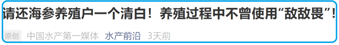 前一段时间,网络上突然开始盛传中国海参养殖户大量使用敌敌畏,差不多每亩要投放两瓶左右的敌敌畏原液,投放之后鱼虾死绝,只剩海参快乐成长。此消息一经网络放大,立刻引起全网恐慌,很多人都开始感叹说中国人能活下来真不容易。