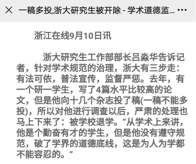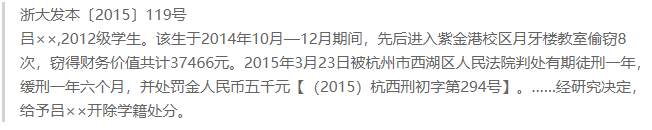 而对于一些判刑更轻的、或者仅仅违背学术道德的学生,浙大采取的则是开除学籍处分。
