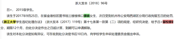 浙大强奸犯留校察看引争议:所求唯“公平”二字!