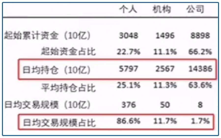 2014-2015的牛熊周期当中,个人的日均持仓是机构的两倍,交易量却达到了机构的8倍,每天的总换手率高达86%,人人都是敢死队,这散户的手痒程度可见一斑。