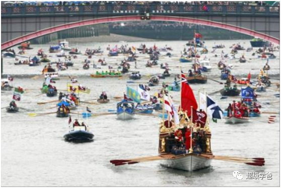 大舰不够,舢板来凑。2012年的女王登基纪念典礼,数百条龙舟和皮划艇喜极而泣,做梦都没想到自己也能C位出道,参加阅舰式。