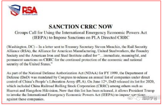 7月23日,美国行业游说团体,正呼吁特朗普政府对中国中车实施永久制裁,理由你都想不到——中国中车的快速发展,对美国铁路运输行业发展构成不稳定因素。