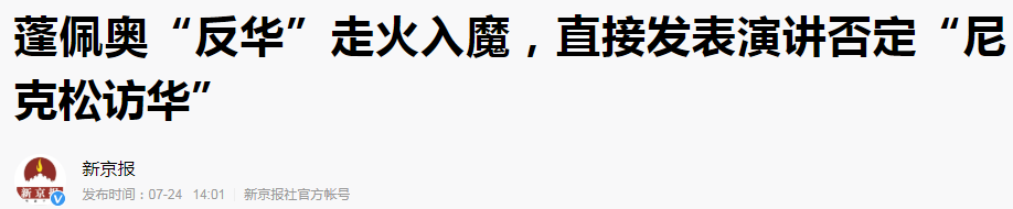 蓬佩奥公然宣称,尼克松访华是错误的!