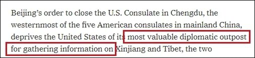 ▲美国《纽约时报》在报道中自曝成都领馆是其重要的“信息采集中心”。