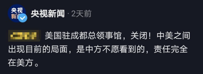 就像中国外交部发言人日前所说,美国驻成都领馆从事着“与身份不符的行动”,那么关闭该领馆自然也就合情合理了。因此,作为一个中国人,或者说是“屁股不歪”的中国人,这时候应该是举双手赞成的,甚至是表现出“喜大普奔”的欢悦感:既解气,又解恨。而事实也确实如此,中国人民的反应非常“朴实无华”,消息一出,各大媒体平台上都是一片胜似新春的喜气洋洋之态,除去疯狂点赞,还不忘留言祝贺一番:
