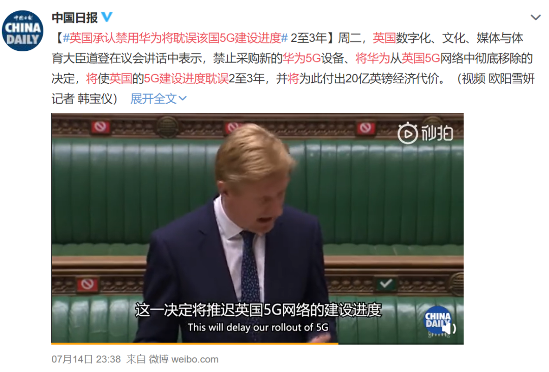 放弃华为5G有可能导致英国在5G领域在未来相当的一段时间内处于落后的状态。