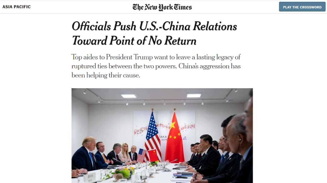 至于他们为何选择这个时间点发起一系列行动,《纽约时报》文章引述知情人士解释说,这是由于美国大选临近,他们考虑到有离开政坛的可能,因此急于留下一笔可以延续下去的“政治遗产”,试图让中美关系的恶化趋势难以逆转。