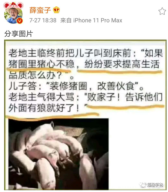 美国政府还有一个绝招,为了降低国内老百姓的不满,告诉老百姓外边有一匹战狼。老牌公知薛蛮子一图道破天机[手动狗头] 。