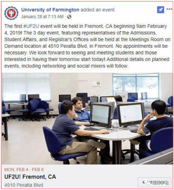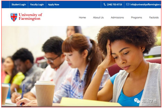 为了钓鱼,移民局挺下本的。这所学校有个好听的名字——法明顿大学,有校徽,有官网,有校址,有校训,还有官方推特,在谷歌地图上还能查到,还可以实地考察。