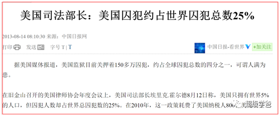 这背后的秘诀是什么呢?原因很多,枪支和毒品泛滥、警察流行钓鱼执法。但这都不足以让美国的犯人这么多。