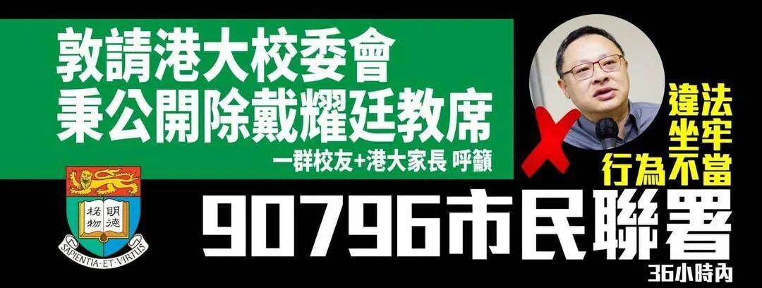 香港市民呼吁港大开除戴耀廷(图源:网络)