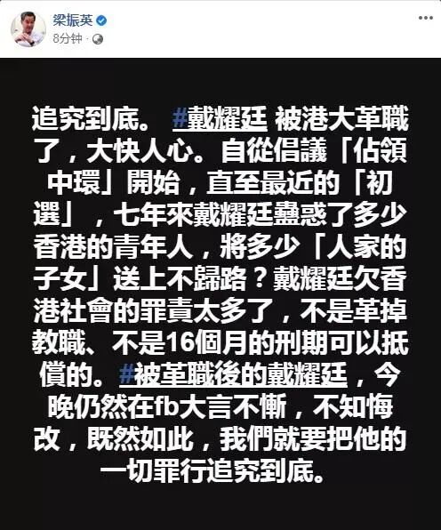 戴耀廷之流,还将为自己的违法行为付出更大代价。