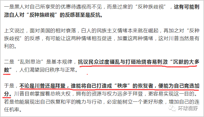 在我们早前文章《剑走偏锋》文章里,提到过一个观点,那就是席卷全美的种族骚乱,很容易刺激到美国“沉默的大多数”,包括在昨天的文章里还提到过,这很容易刺激白人产生逆“反种族歧视”。
