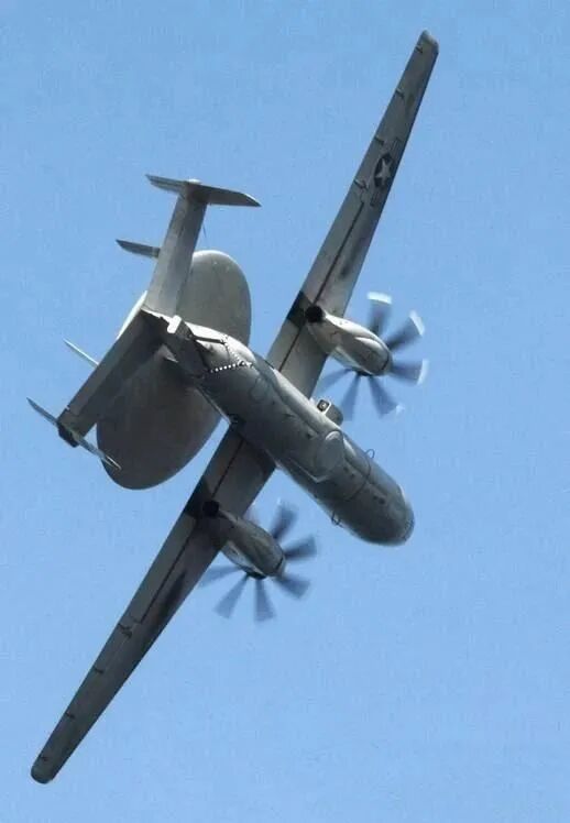 地球上真正靠谱的舰载预警机,就美帝一根独苗:E-2鹰眼预警机。毫不夸张的说,E-2预警机才是美帝航母全球溜达的根本保障,而别人家的航母都只能在门口溜达。没得说,美帝世界霸主的又一例证。