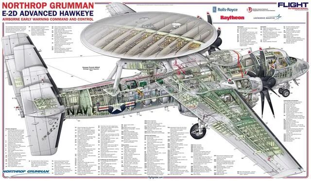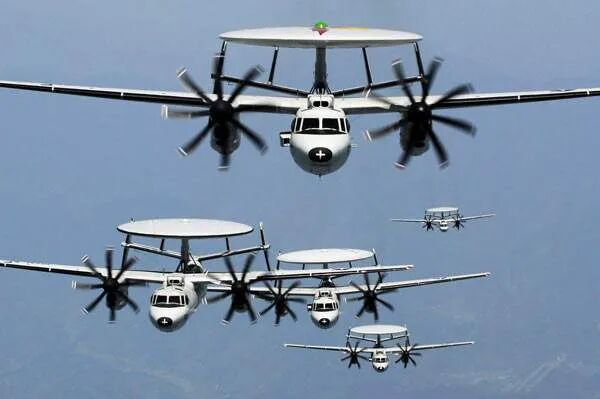 最新款的E-2D,相比之前的ABC三款,可谓是脱胎换骨,顶配中的顶配,这厮有多牛呢?很多人关注的是550公里的对空搜索距离,这其实不算重要,包括滞空时间、巡航速度等等,都是细枝末节。千万别忘了,预警机不仅仅是一架飞翔的雷达站,空中指挥所才是它的本职工作,通过数据链将指挥系统、情报系统和武器系统融为一体,是整个空战最重要的结点!举个例子,E-2D能同时让40架战斗机变身导弹发射架,战机再也不用冒险爬升开雷达,而是全程无线电静默,只需超低空蒙头赶路,把导弹送到射程内,发射完掉头就跑。无论是军舰还是战机,都不用你们开雷达,只管发射导弹就是了,E-2D可以在大后方引导导弹锁定目标。这种“A射B导”的武林绝学,就问你怕不怕?我兔的舰载预警机传言好些年了,因为是摸着美帝过来的,所以这长相嘛,简直就是一个模子刻出来的。