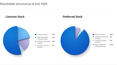 三星虽然是一家韩国企业,但是,欧美资本占了大部分股份。根据三星公布的股权结构,截至2020年第一季度,优先股(可以分红但对公司事务没有表决权)国内外投资者的比例占到86%,普通股国内外投资者的比例低一些,为54%,但也超过了半数。