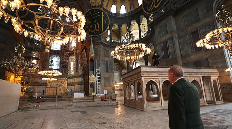 圣索菲亚大教堂在567年前就变成了土耳其的资产,土耳其人怎么处理外人还真是没办法,反对国的担忧其实有别的原因,这个原因我们按下不表,先解释埃尔多安为什么要把它改成清真寺?