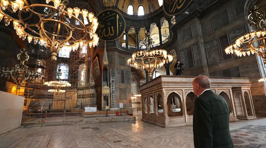 如此有分量的建筑物被变更用途,注定是人类历史上的重要时刻,很荣幸我们再一次经历了这个重要时刻。7月10号那天,在土耳其总统埃尔多安的支持和推动下,土耳其最高行政法院落锤宣布:废除1934年把圣索菲亚清真寺改成博物馆的决定,两周以后改回清真寺重新开放营业,欢迎新老客户前来磕头祈祷。