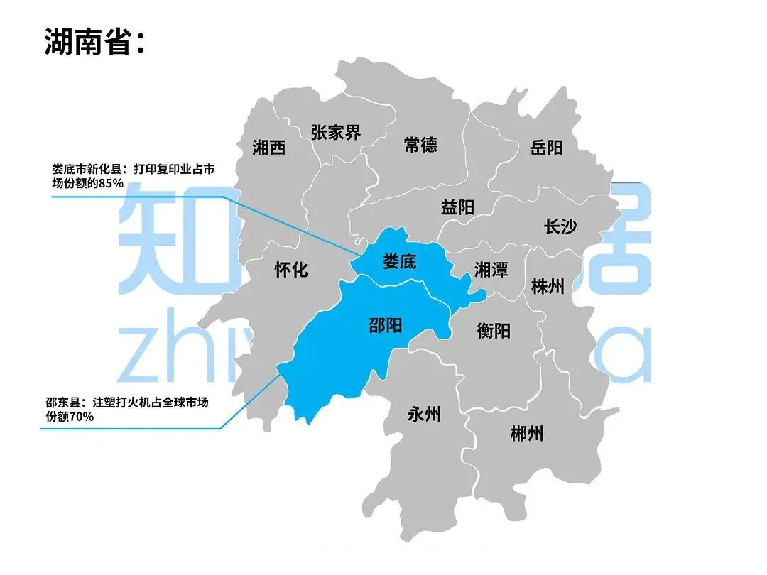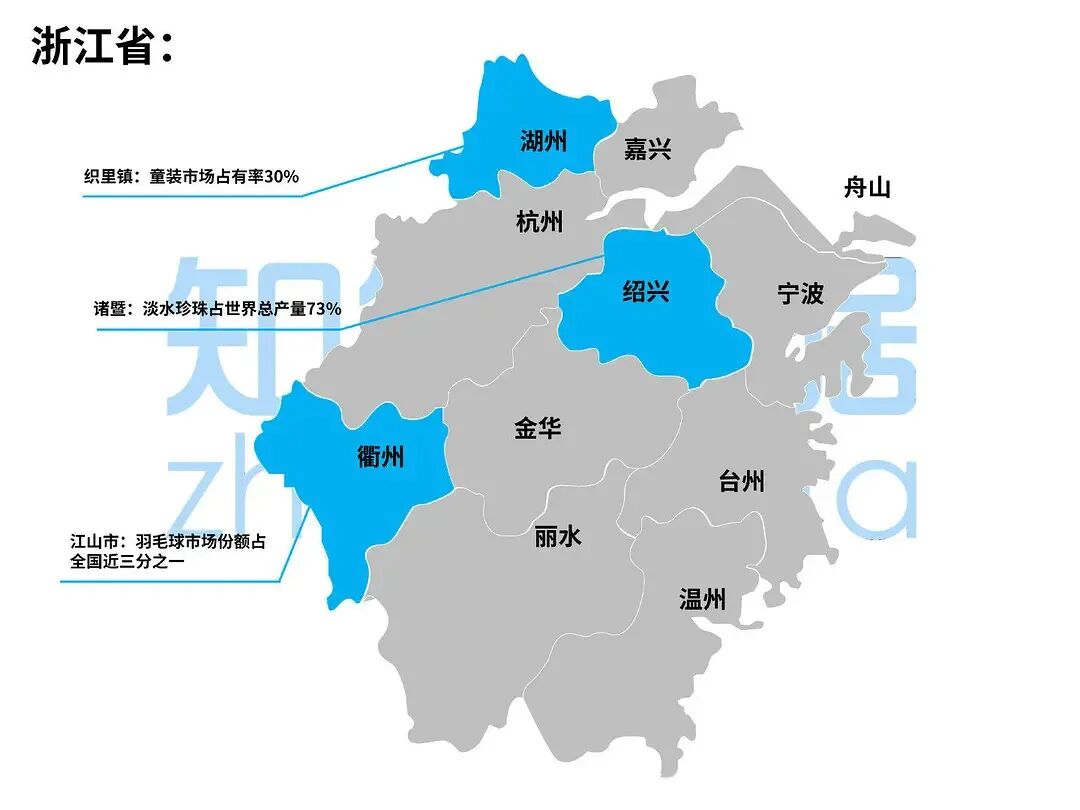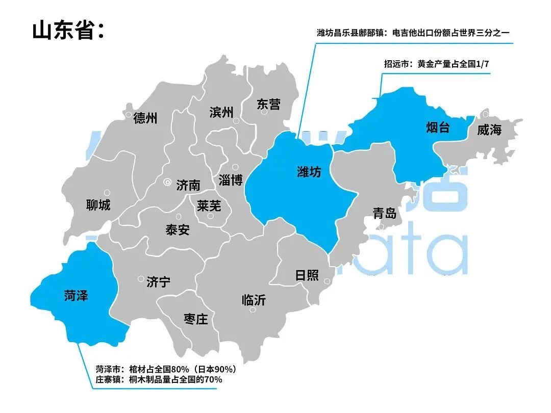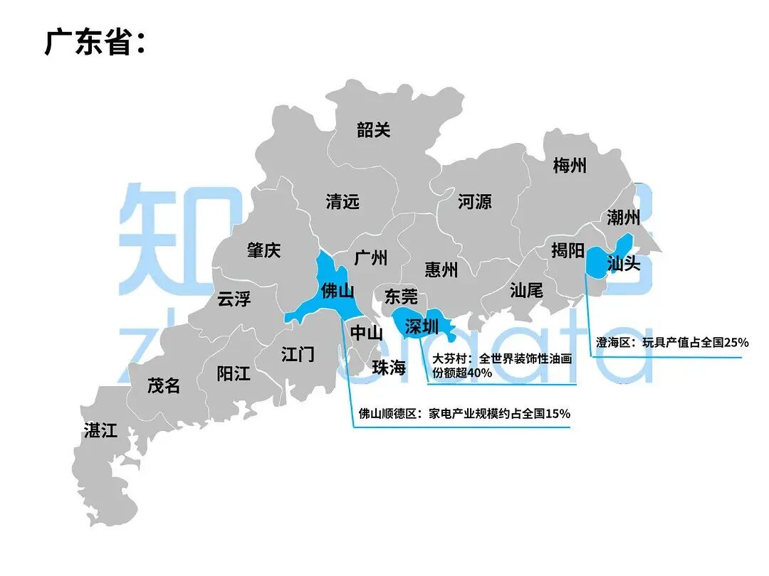 泉州南安市水头镇,石材产量连续10年占全国65%以上,是全国乃至东南亚地区规模最大、种类最齐全的石材生产、出口基地。湖州市织里镇,童装市场占有率达30%,被称为“中国童装之都”。绍兴诸暨市,淡水珍珠占全国总产量的80%、世界的73%,被称作“中国珍珠之乡”。衢州江山市(县级市),羽毛球市场份额占全国近三分之一。佛山顺德区,家电产业规模约占全国15%,美的、万和、格兰仕、万家乐都从此走向世界。深圳大芬村,装饰性油画占世界市场份额超40%,是全国最大的商品油画生产、交易基地,被称为“中国油画第一村”。汕头澄海区,玩具产值占全国25%,出口额约占全国20%。潍坊市昌乐县鄌郚镇,电吉他出口份额占世界三分之一,给吉他调音,是工厂大妈大姐的必备技能。烟台招远市(县级市),黄金资源占全国10%,黄金产量占全国七分之一。菏泽市曹县,棺材产量占全国80%;下辖庄寨镇的桐木制品占全国70%,而日本90%的棺材都来自这个小镇。你甚至能从一个小镇棺材的产量高低,预测一个大国的人口死亡率起伏。保定市高阳县,毛巾产量、毛毯产量均占全国三分之一。邢台市南和县(已改为南和区),宠物食品产量占全国的60%。早在加入WTO之后,中国制造迅速占领全球市场,成为世界工厂。但提起中国制造,不仅仅停留在华为、大疆、海尔这些大型企业上。