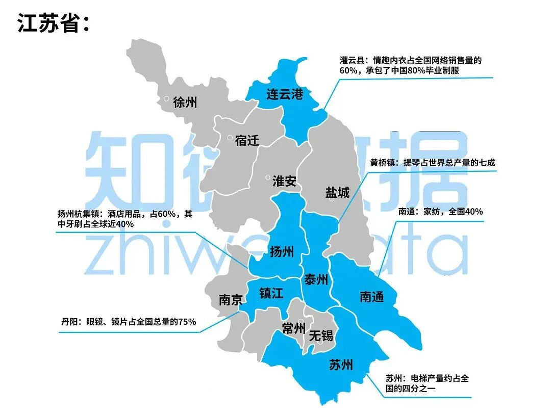 扬州市杭集镇,牙刷产量占全球近40%、全国85%的市场份额,酒店用品产量占全国超过60%。