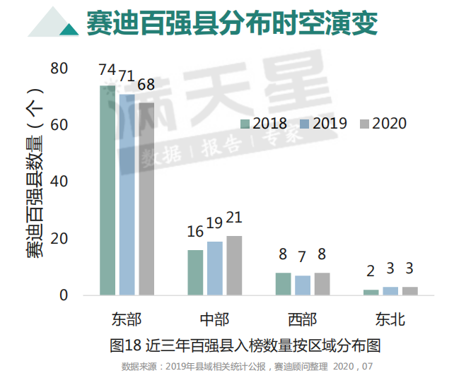 仅仅一个月的时间,就有涉及9个省的12个县,通过“县改区”的形式,成功纳入城区范围。撤县设区(市),已经成为当下中心城市做大做强的必备路径之一。早在90年代,中国就出现过撤县设区(市)的热潮,但出现了占用耕地、城市化指标不达标等问题,1997年时“县改市”被叫停。但随着中国城市化水平提高,大中城市对区域空间、市场空间、行政空间的需求越来越大,扩张势在必行。2013年,在冻结16年之后国务院才批复了两个“县改市”,闸门重新打开。2009年时,全国有855个市辖区、367个县级市、1464个县。而到了2020年6月,市辖区的数量上升到965个,11年时间增加了110个,县级市增加了19个到386个。与此同时,全国的县数量降至1324个,11年时间全国消失了140个县。甚至,一些大城市已经进入“无县时代”。目前,14个地级以上城市已经没有县城,包括北上广深四个一线城市,还有武汉、南京、天津、佛山等强二线城市,也有东莞这种以镇为主要管辖单位的城市。首先,撤县设区,是当下以中心城市为主的都市圈、城市群发展的必然趋势。中心城市做大做强,必然要求更大的空间面积、消费市场、人口流入,而行政区划改革,是最简单易行的方式。其次,行政分割之下,由于财政独立,中心城市不方便直接到周边县市里搞建设、投资。撤县设区后,行政成本大幅减少,中心城市可以更直接地统筹交通、公共服务、产业布局等。再次,对那些经济实力较弱的县来说,划入城区可以提高行政级别(背后就是官员级别提高)、纳入城市财政体系、提高居民收入,无疑都是利好。当然,也有不想变成市区的县城——经济强县,本身实力不弱的他们,更倾向于直接提拔为县级市或地级市,追逐更大的红利。7月28日,最新发布的《2020中国县域经济百强研究》,可以从中了解中国百强县(含县级市)的格局。这100个经济最强县,占全国不到2%的土地、7%的人口,却创造了全国约10%的GDP。而2019年百强县的人均GDP达到11.09万元,远超全国平均水平,其贡献不可忽视。从经济总量来看,100个县城中,GDP突破1000亿的就达到33个,比去年增加3个。排在前三位的,依旧是多年不变的昆山市、江阴市、张家港市,均归属于江苏。2019年,昆山GDP达到4045亿元,江阴GDP达到4001亿元,都首次突破4000亿元,与贵阳、太原两个省会城市相当,超过了兰州、呼和浩特等较弱的西部省会城市。而从区域格局看,百强县的分布极为不均衡。其中,东部地区68个,中部占21个,西部占8个,东北仅有3个县市入围。与2018/2019年相比,东部入围数量在持续下降;中部入围数量则由16个一直上升到21个,崛起速度明显。其中,江苏、浙江、山东三个省的百强县数量都超过15个,依旧是最大赢家。尤其是江苏,百强县数量达到25个,前10名中更是独占一半,并包揽前3位。湖北、河南各有7个县市入围,福建6个、湖南4个,四个省份位于第二梯队。而辽宁、安徽、新疆、陕西、内蒙古、河北、云南、江西、贵州、广东等10个省份的入围数量都不超过3个。诧异的是,中国最强省广东只有1个县入围百强。这和广东特殊的行政规划有关,位于珠三角的广州、深圳、佛山、东莞、珠海、中山等经济强市,全部进入“无县时代”。而整个广东,也仅剩下20个县级市、34个县和3个自治县,大部分都位于粤北、粤西等经济较弱的地区,仅剩下博罗县一个独苗入围,也就不奇怪了。此外,还有黑龙江、吉林、山西、甘肃、青海、宁夏、四川、重庆、西藏、广西、海南等11个省份没有县市入围。从三大产业占比看,百强县二产占比高达到51%,而三产仅占43.4%,远低于同期全国水平和发达省水平。与已经进入消费拉动经济的广东、浙江、江苏等发达省份甚至是全国对比,百强县显然还处于工业化阶段。但正是这些以第二产业为重心的县城,藏着中国实体经济发展的巨大能量。有些县市甚至乡镇的特色产业,已然成为全国甚至全球翘楚。苏州,2018年拥有电梯制造单位83家,电梯产量达到15万台,约占全国总产量的四分之一。