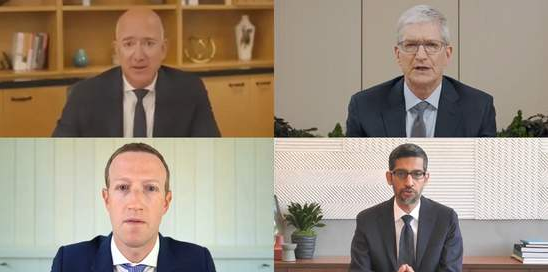 7月29日,亚马逊、苹果、脸书及谷歌负责人出席美国国会听证会,以视频连线方式接受质询(图源:新浪网)