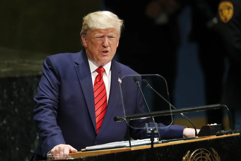 ▲资料图片:2019年9月24日,在位于纽约的联合国总部,美国总统特朗普在第74届联合国大会一般性辩论上发言。(新华社记者 李木子 摄)