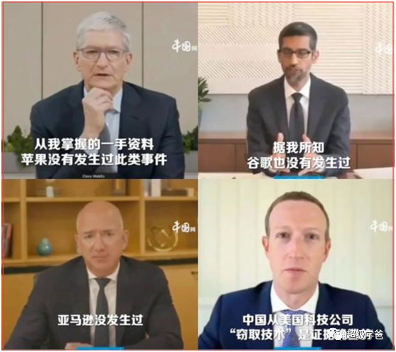 在7月24日的听证会上,苹果、谷歌、亚马逊都否认了中国窃取技术,但只有脸书的小马扎附和特朗普的政策,攻击中国。