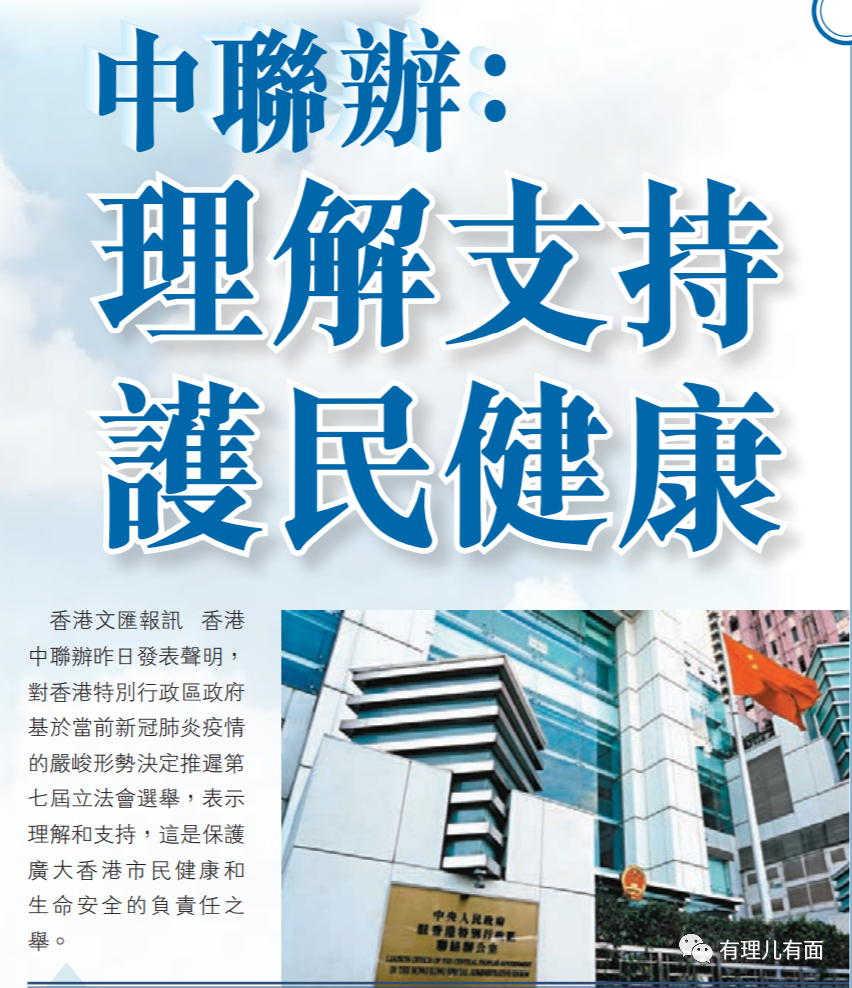 国务院港澳事务办公室发表声明表示,特别行政区政府鉴于疫情蔓延的严峻态势,决定推迟第七届立法会选举,这体现了对香港市民的生命安全和身体健康高度负责的态度,十分必要,合理合法,中央政府充分理解和支持。