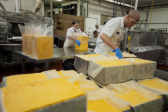 美国俄亥俄州柏林,海尼奶酪工厂里的工人在工作。