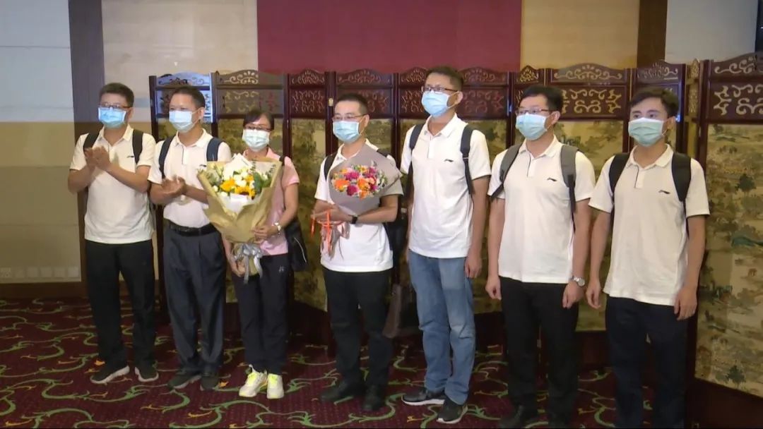 8月2日,“内地核酸检测支援队”的7名先遣队队员抵港。图源:港媒