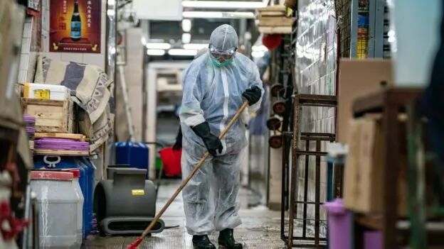 清洁人员在进行病毒消杀工作。图源:Getty Image