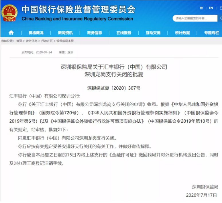 上个月,汇丰关闭深圳龙岗支行,也引发社会热议。