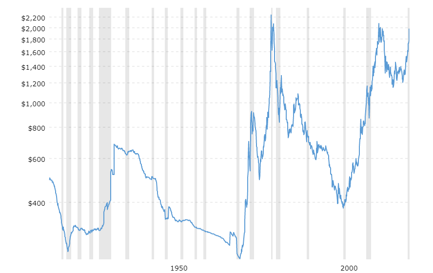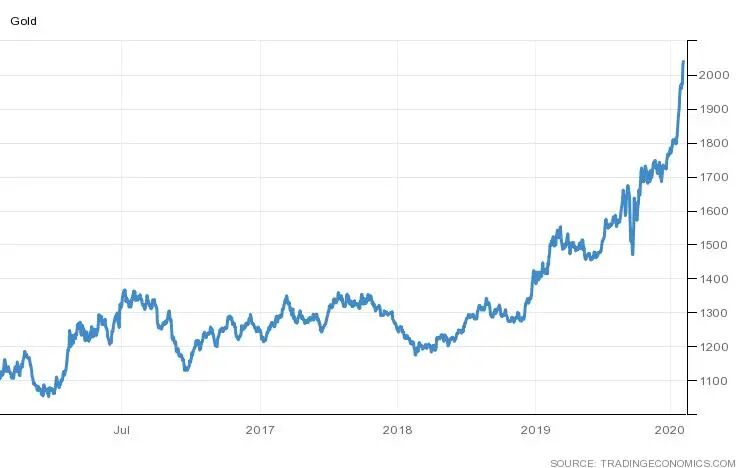 翻看历史金价就可以发现,黄金价格从大萧条后的300多美元涨到了二战前的600多,而08金融危机前,金价从“911”后的400多美元涨到了2007年的800多,都是