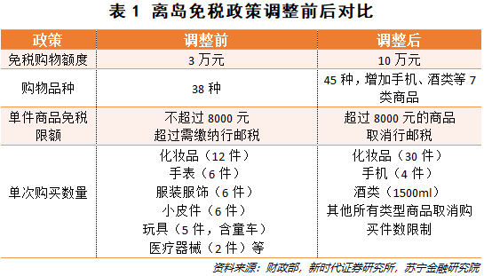 财政部、海关总署、税务总局于6月29日发布离岛免税新政策,规定自7月1日起,离岛旅客每人每年的免税额度从3万提升到10万,取消单件商品8000元免税限额规定,还新增手机、平板等七大类免税商品。