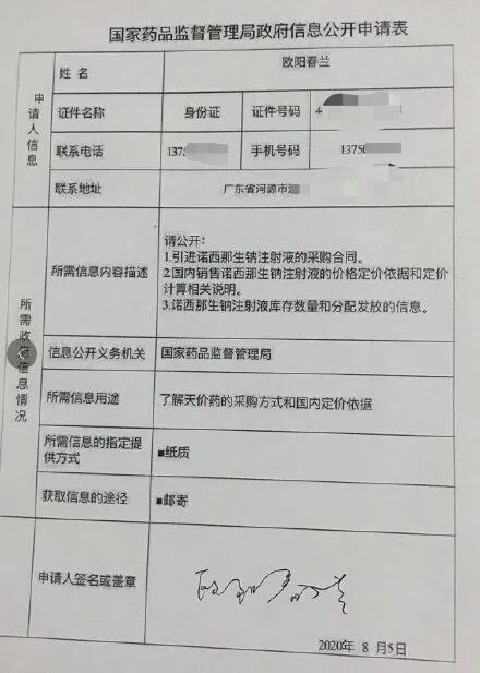看到这样的差异,有人向国家药管局申请公开诺西那生钠注射液的采购方式和国内定价依据。
