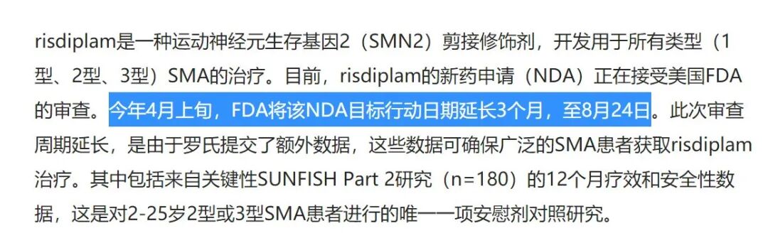 罗氏Risdiplam的新药申请目前正在接受美国FDA的审查,以及在中国备案。