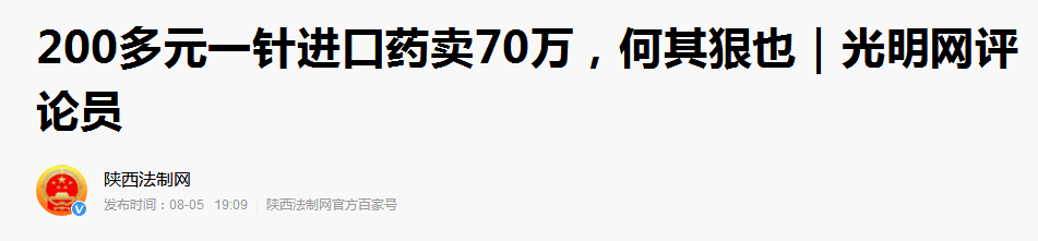 前几天,有自媒体说,今年刚满1岁的湖南婴儿由于患上了罕见病“脊髓性肌萎缩(SMA)”,但特效药诺西那生钠价格近70万元人民币,在澳大利亚的价格为41美元,折合人民币才280元,在日本近乎免费。这个说法引起许多人强烈关注。一些自媒体指责药监局、发改委没有管好价格,任由药企把280元的药定70万的“天价”。光明网评论员发表文章说:“如果此药的采购买卖属于市场行为,那么,发放药品进口许可证的部门和市场监管机构,在如此巨大的中外差价和巨额暴利面前的无动于衷,以及那些治病救人的机构面对一些图财不救命的医药进口商时的无所作为,算不算是冷漠和失职?”