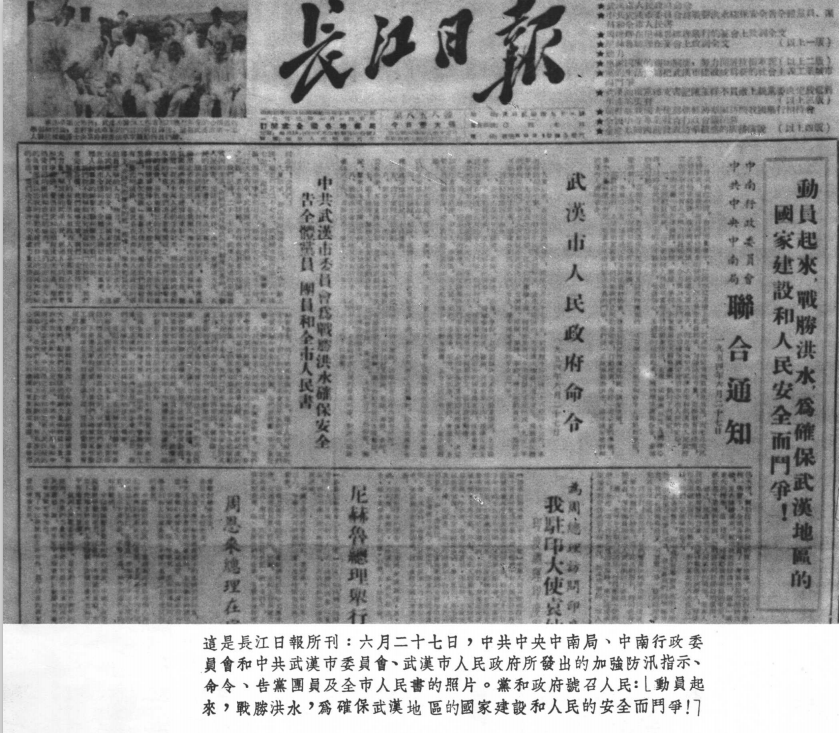 这一次,为了保卫堤防,武汉130公里的大堤上动员了20万军民,日夜巡防,以人在堤在的精神和洪水战斗了一百个日日夜夜。