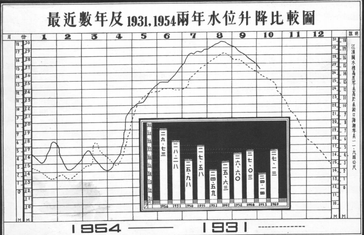但这年洪水上涨的速度之快,势头之猛超乎人们的预料,在八月十八日洪水到达最高位的29.73米前,武汉沿线大堤又先后经历了三期工程,以每十天升高半米的速度,最终加高到30.5米,跑赢了这场生死竞赛。水涨坝高,在这段时间里,长江上的堤防几乎是以肉眼可见的速度在生长。