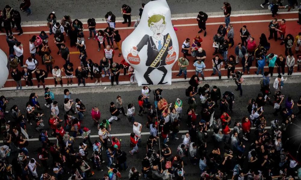 愤怒的人民走上街头,抗议波索纳罗,并将其比喻为吸人民血的魔鬼