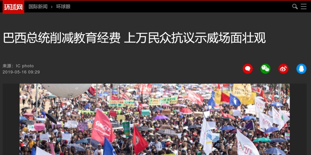 所以波索纳罗上台后,为了减少政府赤字,开始大砍社会福利,其中就包括事关民生的教育经费