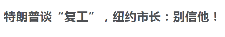 在疫情重创纽约经济后,白市长果断拒绝了联邦要求尽快复工复产的要求: