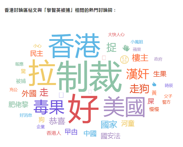 同时,香港警方国安处对涉嫌违反“香港国安法”的相关人员的调查工作仍在继续,黎智英及次子被補后,“汉奸”“走狗”“恭喜”成为香港讨论区的热门词汇,而黄之锋果真被我说中,吓得一晚无眠,连发多条推特壮胆。