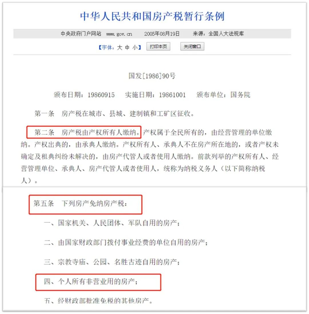 房产税早已有之。早在1986年,我国就已出台《房产税暂行条例》,其中明确,房产税由产权所有人缴纳,而“非经营用的房地产”则在豁免之列。