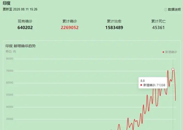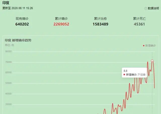 8月8日,印度新增病例创单日新高,日增7.1万。
