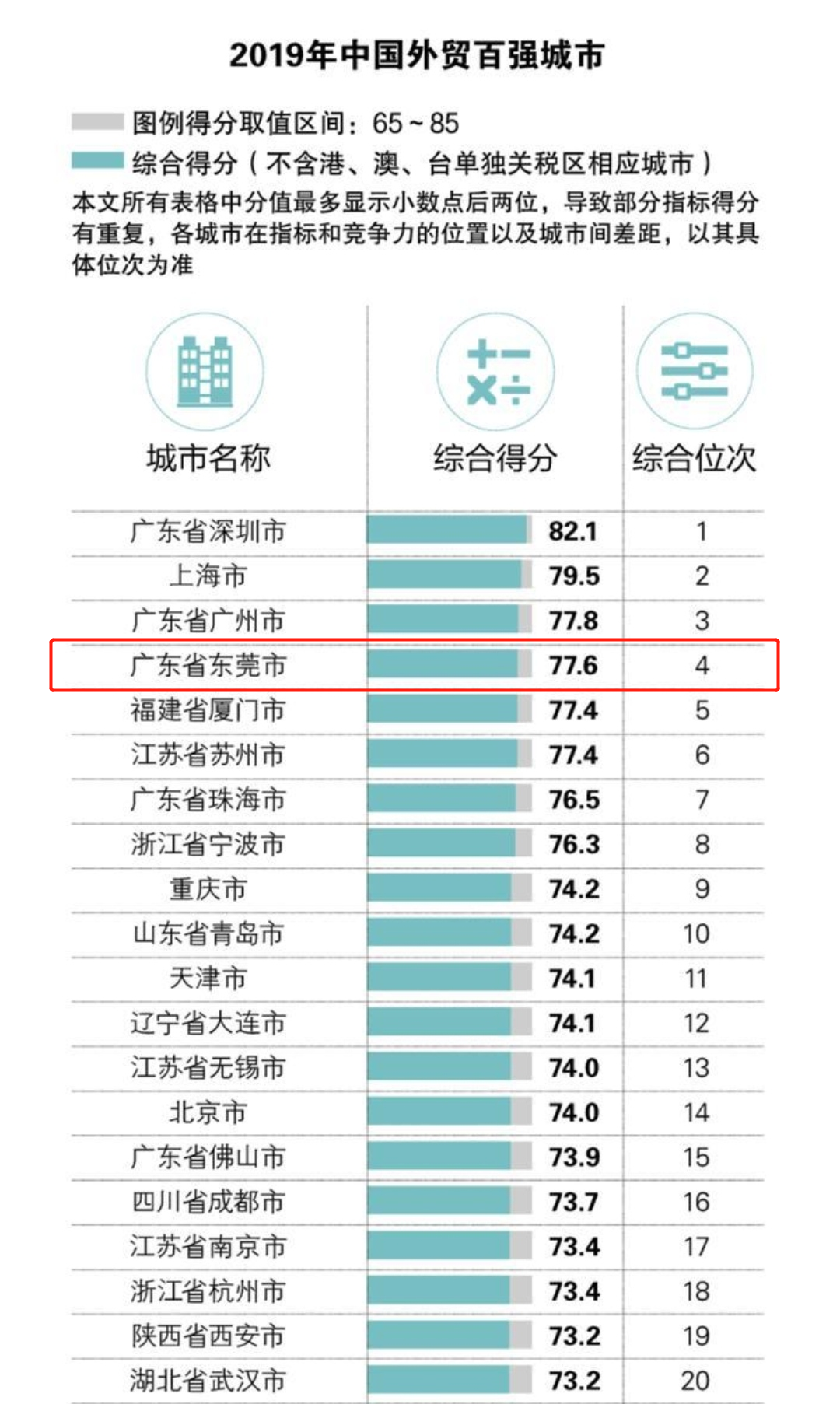 据中国海关总署主办的《中国海关》杂志,近13年来,东莞一直在“中国外贸百强城市”中排名前五。