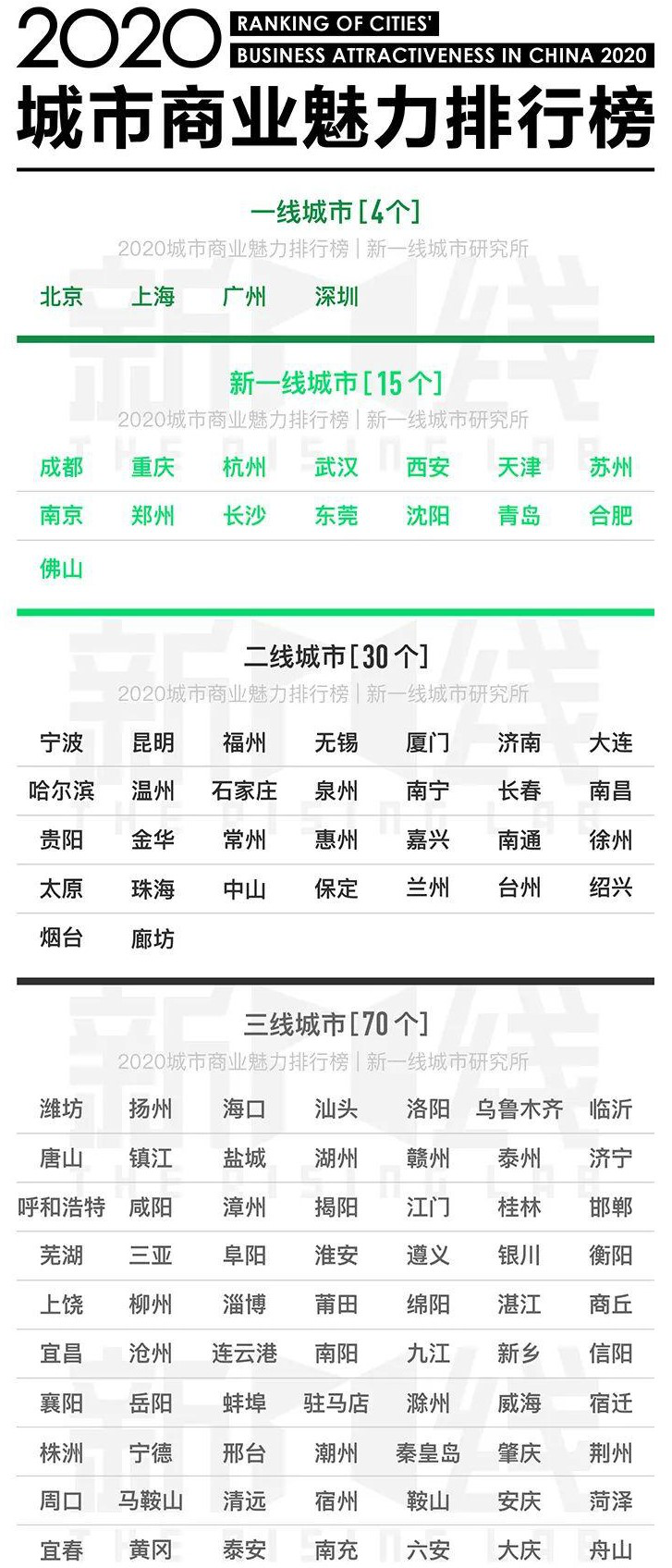 据第一财经·新一线城市研究所发布的《2020城市商业魅力排行榜》,17个头部城市,基本上与一线城市、新一线城市重合。