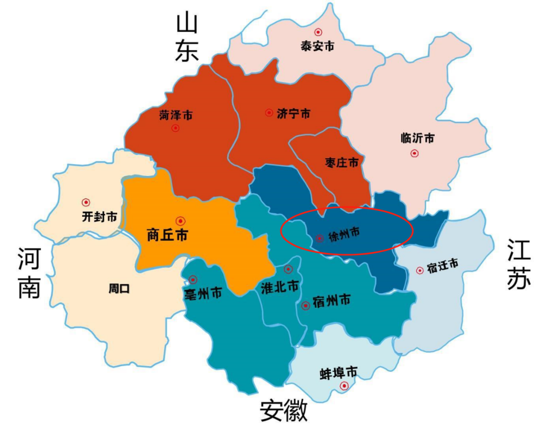 但如果把视线放到整个华东、华北,徐州则是苏鲁豫皖四省交界要道。